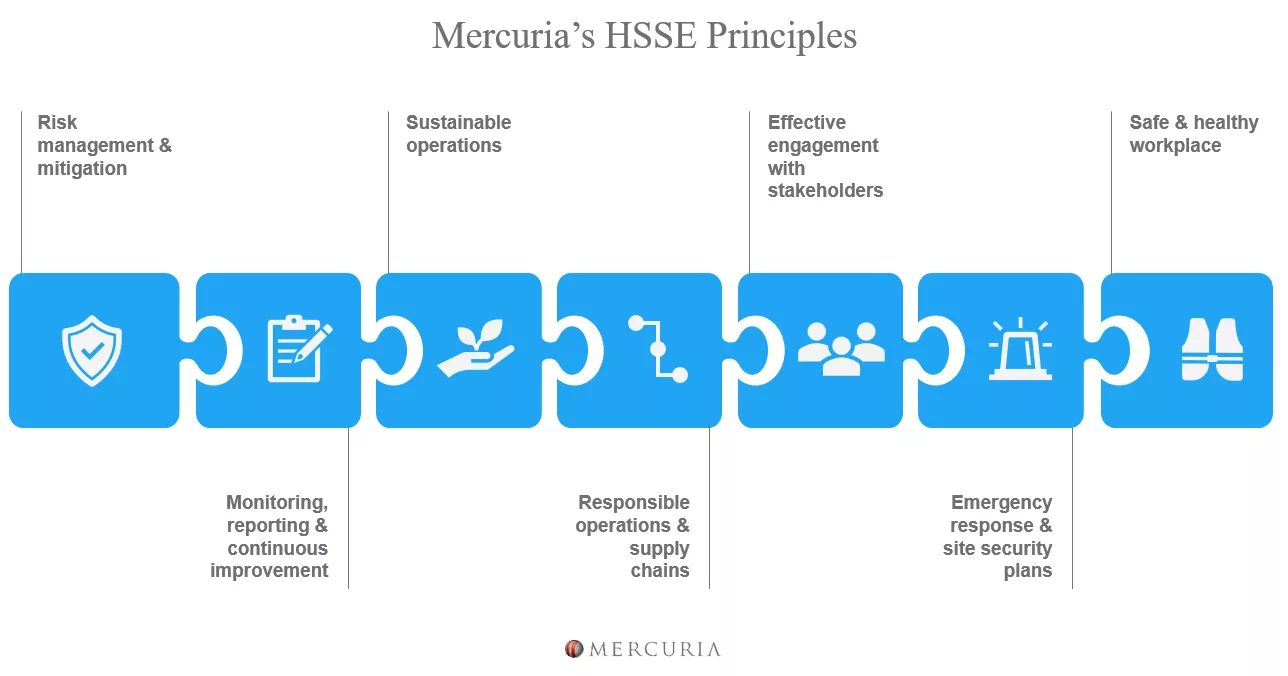 Mercuria holds its Health, Safety, Security and Environmental (HSSE) principles as fundamental to the Group’s business activities. These principles are expected of all our employees and partners and include:
